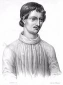 Giordano Bruno ist eine wichtige Person des Übergangs vom mittelalterlichen Philosophieren über die Natur zur modernen Naturwissenschaft. Er wurde 1548 in Nola im Königreich Neapel geboren. Mit 11 Jahren ging er nach Neapel, er trat 1565 dem Dominikaner-Orden bei und studierte an der Universität von Neapel. Schon 1566 geriet er wegen seiner Ablehnung der Marien- und Heiligenverehrung mit der Kirche in Konflikt, jedoch konnte die Klage niedergeschlagen werden. 1572 erhielt er die Priesterweihe. Wegen der Lektüre verbotener Schriften – u.a. des Erasmus von Rotterdam - geriet er in den Verdacht der Ketzerei. Er floh zunächst nach Rom und dann weiter nach Norditalien. Er legte seine Mitgliedschaft im Dominikaner-Orden nieder. 1578 verließ er Italien und begab sich nach Genf. Dort schloss er sich dem Kalvinismus an, den er später aber wieder aufgab. Es folgte ein Aufenthalt in Toulouse, wo er Privatvorlesungen hielt, bis er ordentlicher Lektor an der Universität wurde. Es folgte ein Aufenthalt in Paris, wo er den französischen König Heinrich III. Durch sein hervorragendes Gedächtnis beeindruckte. Er wurde zum außerordentlichen Professor der Universität Paris ernannt. In dieser Zeit entstanden neben fachlichen Schriften auch eine Komödie. Vermutlich veranlasste die katholische Liga unter Führung des Hauses Guise seinen Fortgang. Jedenfalls wechselte G. Bruno nach London. Dort befasste er sich mit naturwissenschaftlichen Themen, verteidigte die heliozentrische Lehre des Kopernikus und verfasste die wichtige Schrift ”Über das Unendliche, das Universum und die Welten”. Darin sprach er sich für ein unendliches Weltall aus und stellte fest, dass die Sterne Sonnen wie unsere sind. Damit verdrängte er verdrängte nach Ansicht seiner Gegner noch stärker als Kopernikus die Erde aus dem Zentrum des Universums. 1586 ging Bruno nach Deutschland und wirkte in Marburg, Wittenberg und nach einem kurzen Aufenthalt in Helmstedt und Frankfurt. 1592 stellte ihn der Venezianer Mocenigo als Lehrer ein. In Venedig stellte sich jedoch heraus, dass Mocenigo in die Magie eingeweiht werden wollte. Als das nicht geschehen konnte, wurde Bruno an die Inquisition ausgeliefert Er wurde nach Rom überführt und einem von dem Inquisitor Bellarmin geleiteten Untersuchungsverfahren unterworfen. Von einer Liste von Aussagen, die er widerrufen sollte, wollte er einige ausklammern. Es kam darüber zu keiner Einigung und so wurde er am 17.2.1600 als Ketzer lebendig auf dem Scheiterhaufen verbrannt.