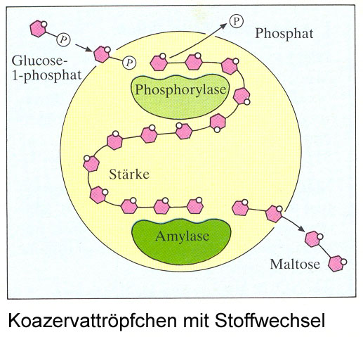 brachte in solche Tröpfchen das Enzym Phosphorylase und gab Glucose-1-phosphat